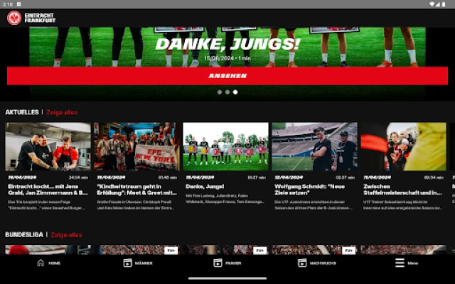 Visi „Eintracht" gerbėjai ras viską, ko trokšta: naujienas, treniruočių įspūdžius, interviu ir išskirtines užkulisių įžvalgas apie šį tradicinį klubą. Būkite arčiau „Eintracht" nei kada nors anksčiau.