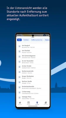 Programa siūlo išsamų asmeninį atliekų kalendorių, kurį galite pritaikyti keliems adresams ir nustatyti patogius priminimus, kad niekada nepamirštumėte išvežimo dienų. Be to, išsamus „Atliekų A-Ž" vadovas suteikia aiškias instrukcijas, kaip tinkamai šalinti įvairias atliekas, kartu su susijusiomis datomis. Jei ieškote konkretaus surinkimo punkto, integruota vietos paieškos funkcija su navigacija greitai nurodys kelią iki artimiausio atliekų surinkimo kiemo, pavojingų atliekų mobiliojo punkto, stiklo konteinerio ar net viešojo tualeto, taupydama jūsų laiką ir pastangas.
