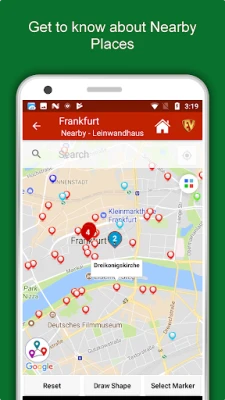 "Frankfurt Travel & Explore" programėlė ne tik nurodo, kur eiti, bet ir detaliai paaiškina, kodėl, kada ir kaip aplankyti įvairias miesto vietas, pateikdama tikslias lokacijas išsamiame žemėlapyje. Naršykite miestą pagal įvairias temines kategorijas – nuo Meno ir istorijos iki Gamta klajokliams ar Kulinarijos. Žymėkite savo mėgstamas vietas, gaukite detalius maršrutus ir netgi pasižvalgykite po gatves su integruotu Gatvės vaizdu, kad tiksliai žinotumėte, kas jūsų laukia. O EduBank funkcija leis jums išsaugoti visas brangiausias Frankfurto akimirkas ir vietas, sukuriant unikalų asmeninį kelionių žurnalą.
