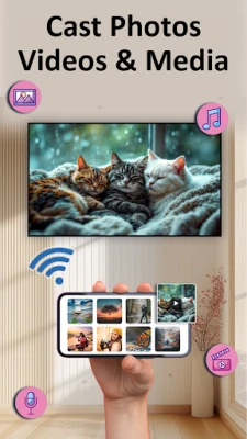 Pavargote spoksoti į mažą telefono ekraną, kai norite mėgautis mėgstamais filmais, nuotraukomis ar vaizdo įrašais? Tegul jūsų pramogos atgyja dideliame ekrane su „Screen Mirroring - Cast To TV"! Ši intuityvi programėlė akimirksniu paverčia jūsų mobilųjį įrenginį galingu pramogų centru, leidžiančiu be vargo transliuoti turinį tiesiai į jūsų televizorių. Pamirškite sudėtingus kabelius ir sudėtingas sąrankas – mėgaukitės sklandžiu ir aukštos kokybės vaizdu bei garsu, persikėlusiu iš jūsų kišenės į svetainės centrą.