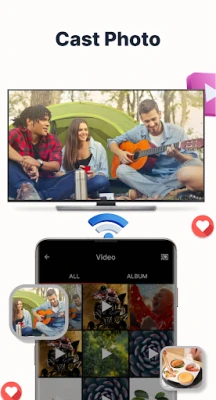 „TV Cast for Chromecast" leidžia greitai transliuoti telefoną į televizorių. Mėgaukitės savo turiniu dideliame ekrane, palaikydami „Chromecast", „Roku", „Fire TV", „Xbox", „Samsung" ir „LG" televizorius. Pamirškite mažus ekranus ir patogiai žiūrėkite mėgstamas nuotraukas bei vaizdo įrašus.